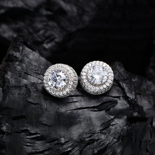 1 Pair Hip Hop Wedding Zircon Stud Earrings,Sparkling,Unisex,Daily Accessories And Women's Jewelry