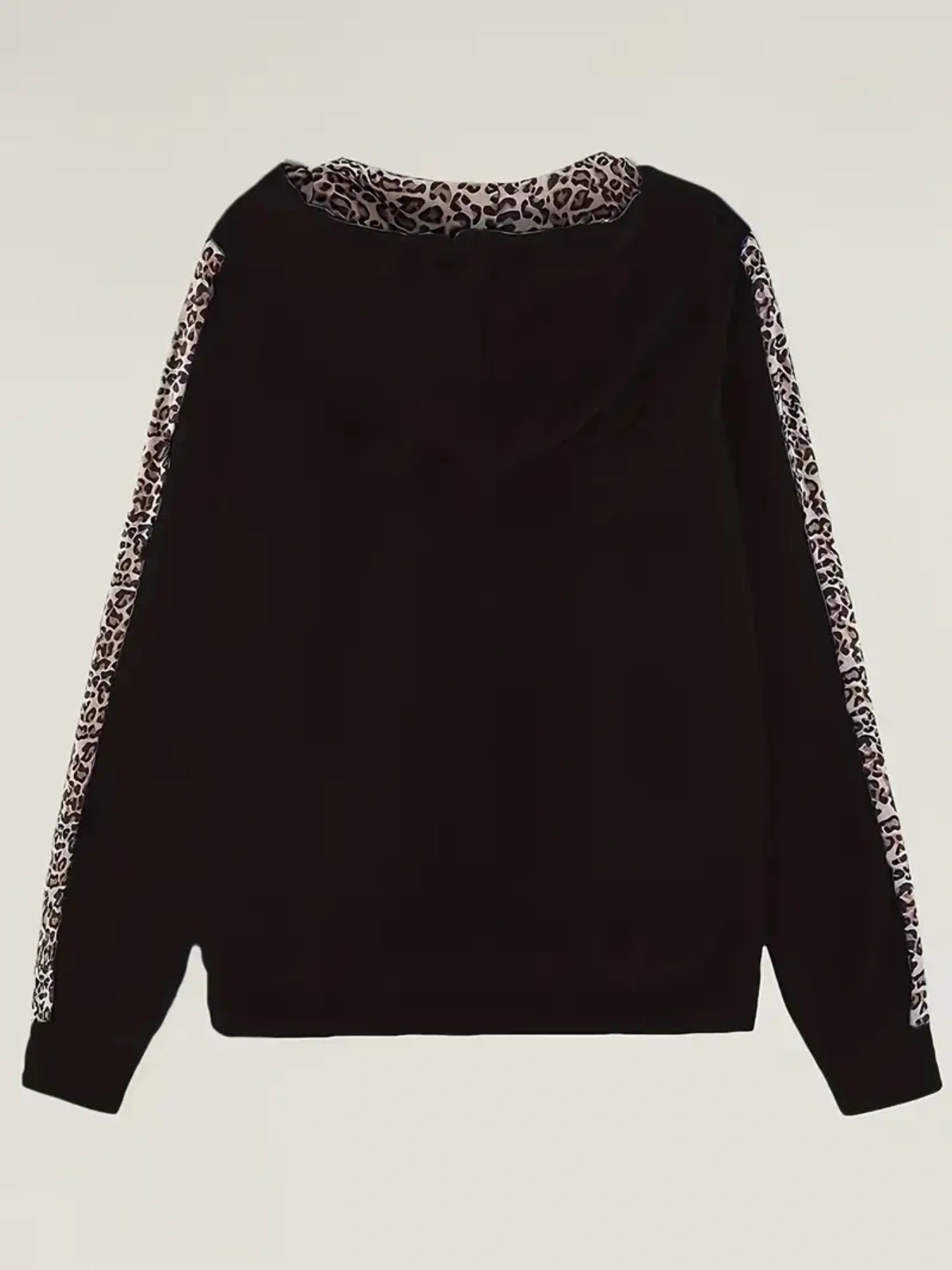 2 Pieces Of Women's Casual Leopard Print Jacket And Sports Pants Set, Long Sleeved Zipper Drawstring Jacket And Zipper Waist Slanted Pocket Sports Pants, Soft And Comfortable, Suitable For Outdoor And