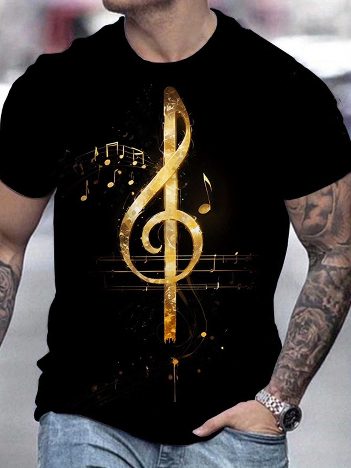 Men's Casual Summer T-shirt With Geometric Notes And Music Symbol Prints, Ideal For Gift Giving