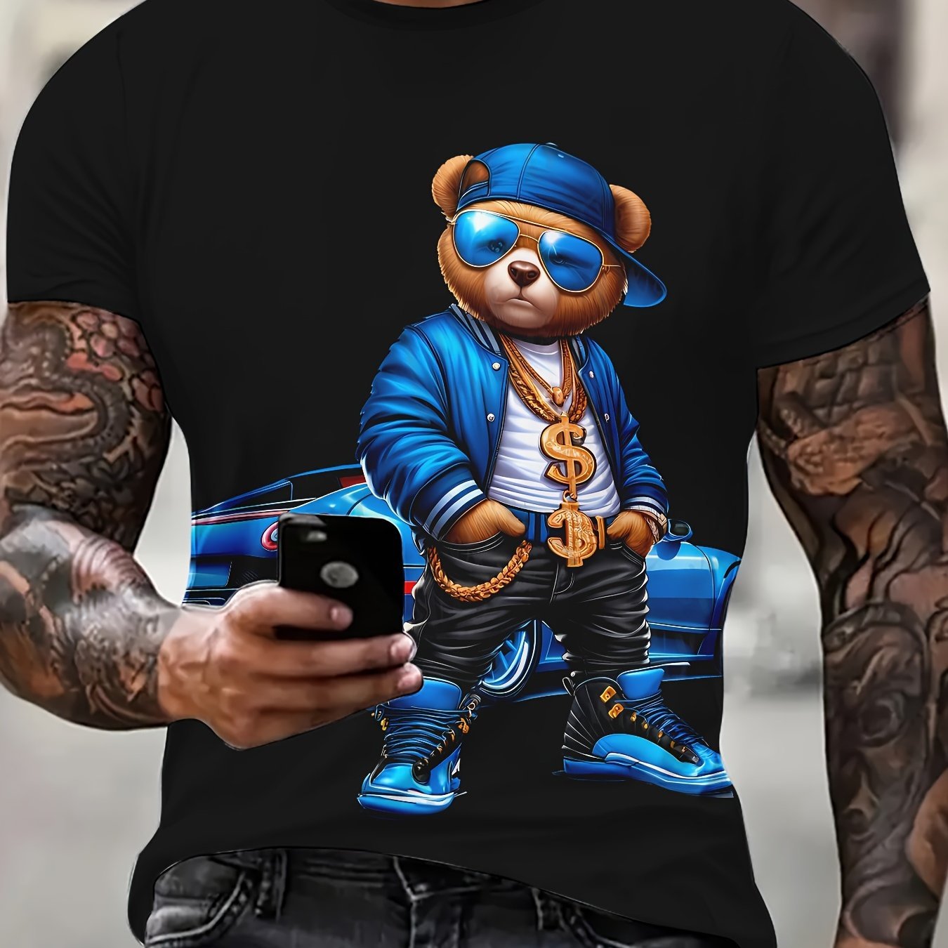 Men's Novelty T-shirt - Cool Bear Printed Casual Round Neck - Loose Short Sleeve - Cartoon Pattern T-shirt - Polyester Fabric - Easy To Care For