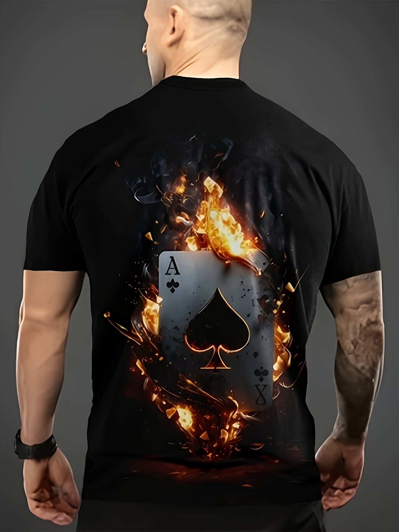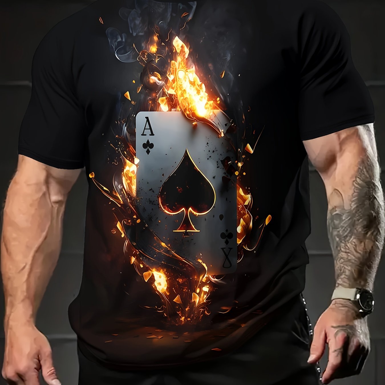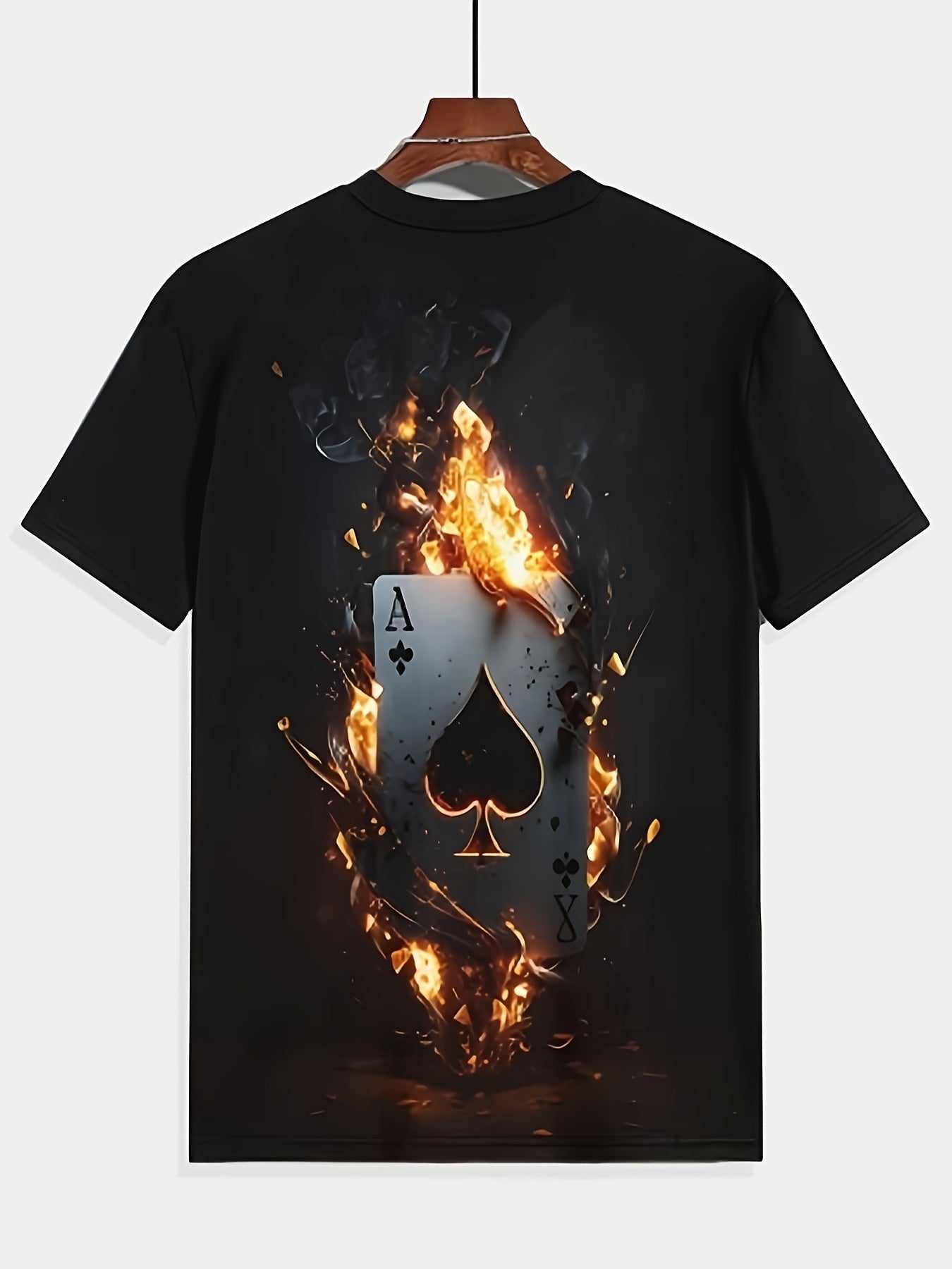 Men's Poker Pattern T-shirt, Casual Short Sleeve Round Neck T-shirt, Outdoor Men's Clothing
